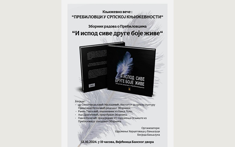 У суботу, 12. октобра, у Вијећници Банског двора у Бањалуци, одржано је књижевно вече „Пребиловци у српској књижевности“ и промоција зборника радова о Пребиловцима И испод сиве друге боје живе приређивача Аце Драгићевића.